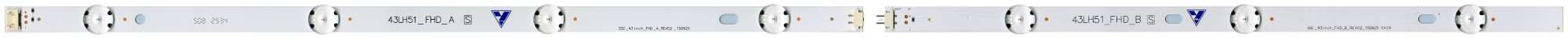 Маркировка: 43LH51_FHD. Для ТВ с диагональю 43". Каждая планка состоит из двух частей: А и В. Алюминиевое основание с термоскотчем. Напряжение питания светодиодов 3В.