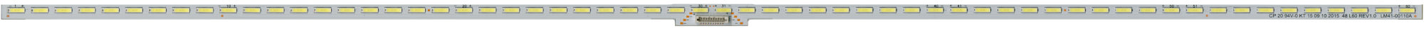 Для ТВ с диагональю 40". Состоит из двух частей. Основание из фольгированного текстолита. Напряжение питания светодиодов 3В. В телевизоре установлено 6 составных планок.