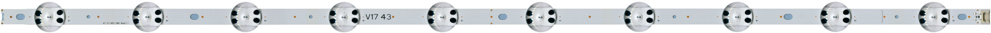 Маркировка: V1749L1/V1749R1. Для ТВ с диагональю 49". Алюминиевое основание. Напряжение питания светодиодов 3В. В телевизоре установлено 2 планки.