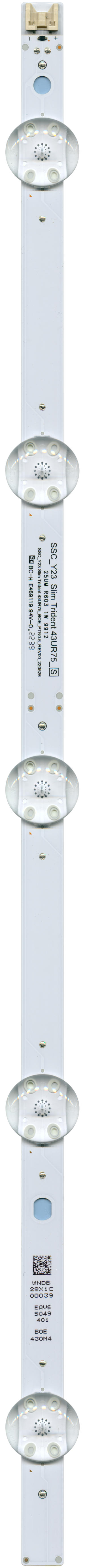 Светодиоды, светодиодные планки, линейки и модули для подсветки ЖК панелей » Светодиодные планки и линейки » Комплект светодиодной подсветки SSC_Y23 Slim Trident 43UR75_BOE_PTN0.6_REV00 (5 планок по 466 мм 5 линз)